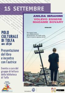 Giovedi 15 settembre ore 18:30 presso il Polo Culturale di Tolfa Anilda Ibrahimi presenterร “Volevo essere Madame Bovary” –ย Einaudi editore.