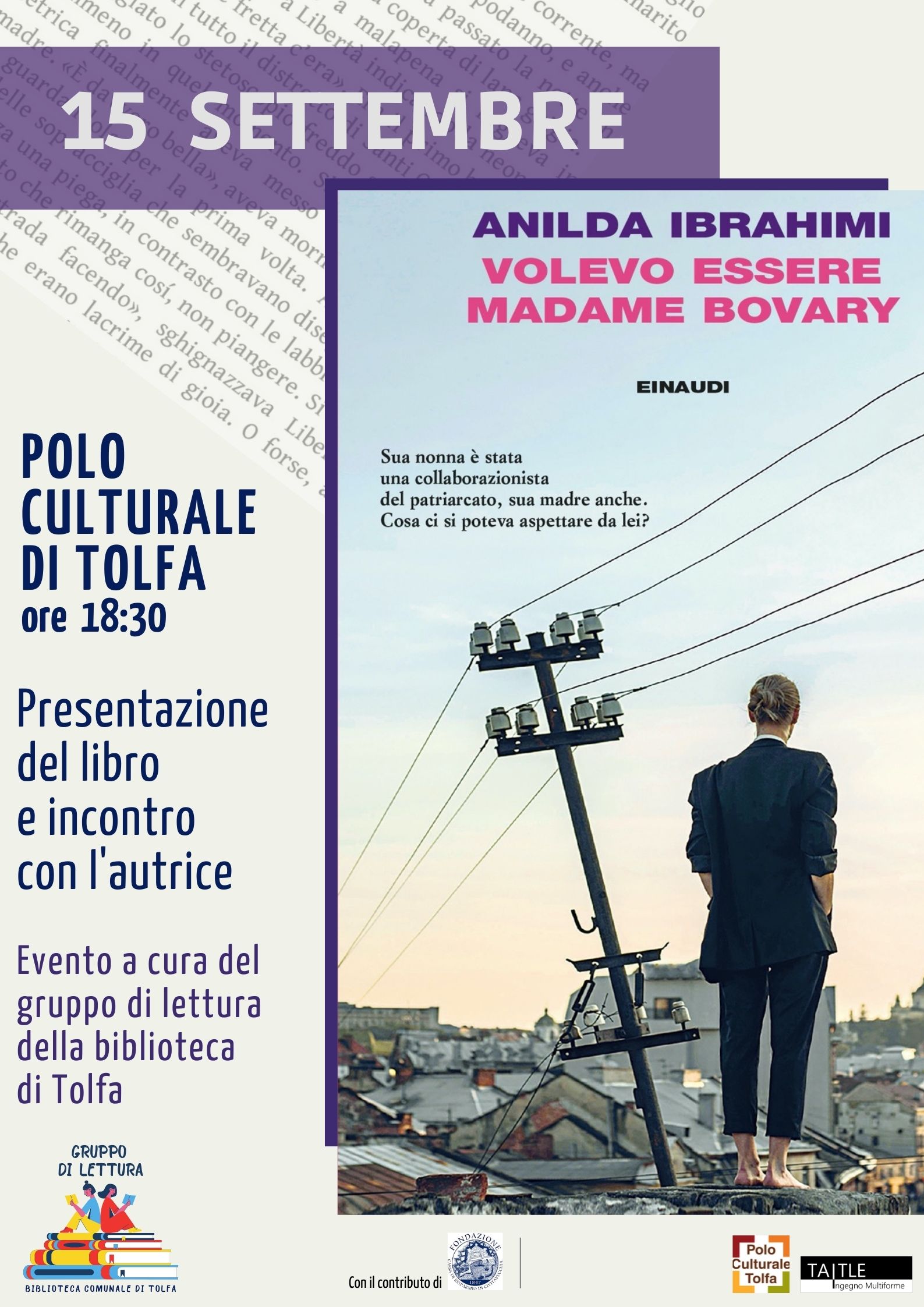 Evento a cura del Gruppo di lettura della Biblioteca di Tolfa, realizzato con il contributo della Fondazione Cariciv.