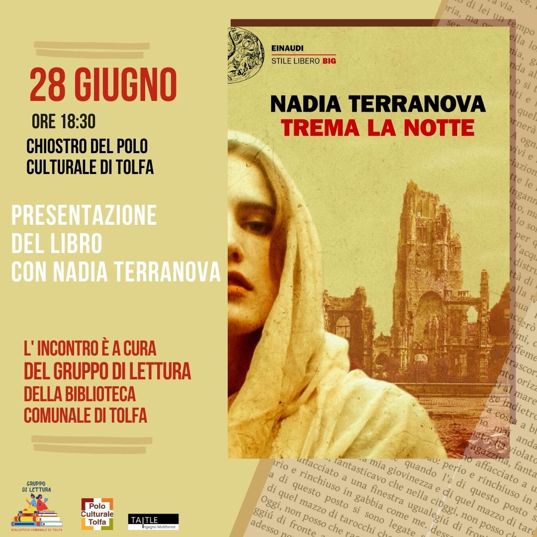 Incontro con Nadia Terranova, autrice di “Trema la notte” (Einaudi), il Gruppo di lettura della Biblioteca comunale di Tolfa e tutti gli appassionati